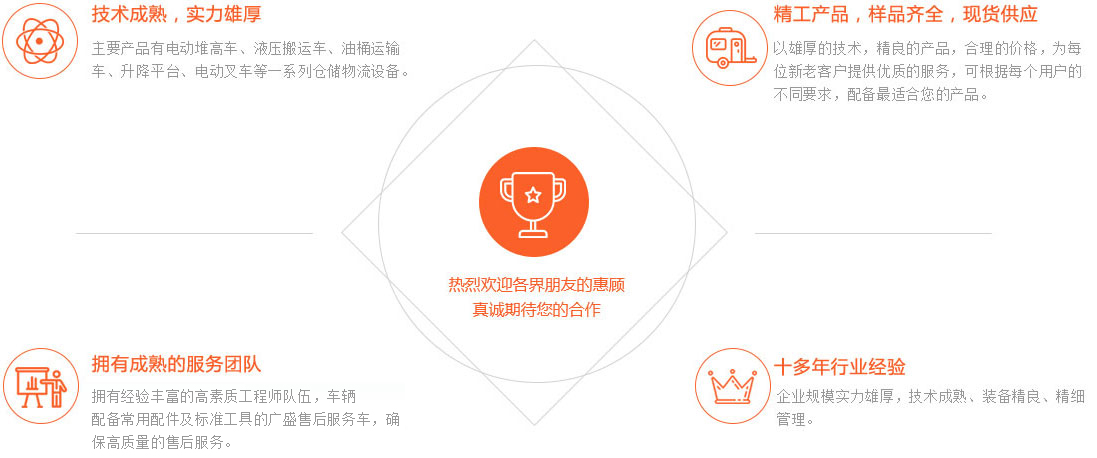 天津市廣盛搬運(yùn)機(jī)械有限公司成立于2003年,是在國內(nèi)倉儲(chǔ)搬運(yùn)設(shè)備具有一定地位的專業(yè)生產(chǎn)制造服務(wù)商。主要產(chǎn)品有:電動(dòng)堆高車、液壓搬運(yùn)車、油桶運(yùn)輸車、升降平臺(tái)車、電動(dòng)叉車等一系列倉儲(chǔ)物流設(shè)備。十幾年來,我們一直致力于吸收、引進(jìn)世界物流產(chǎn)品與技術(shù),堅(jiān)持不懈,創(chuàng)新發(fā)展,為國內(nèi)外客戶提供安全、可靠、省力、高效、專用的各類物流搬運(yùn)產(chǎn)品。